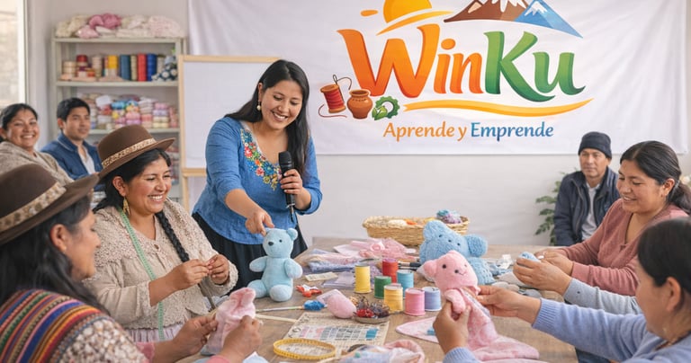 WinKu es un Centro de Capacitación 100% práctica que busca generar habilidades productivas para producir desde casa, está enfocado principalmente en la capacitación de mujeres para aportar a lograr su empoderamiento e independencia económica, pero no excluye a hombres. Así que tanto mujeres y hombres son bienvenidos en WinKu.